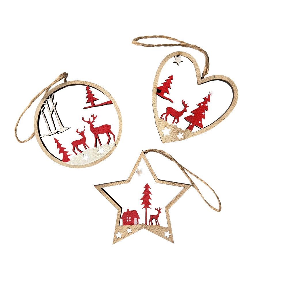 Holzdeko Set (Kugeln, Sterne & Herzen) mit winterlichem MotivBringe festliche Stimmung in dein Zuhause!
