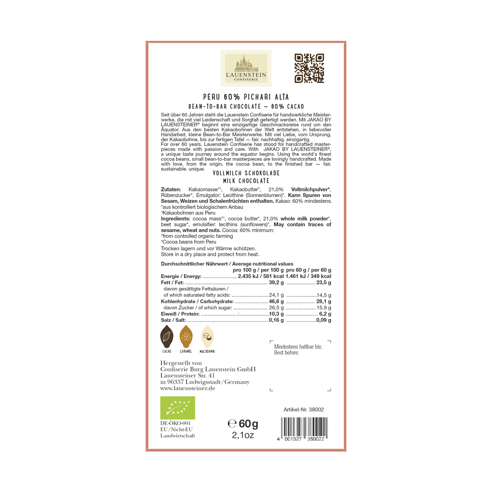 Der Kakao hat einen cremig weichen Karamellgeschmack mit nussigen Aromen von Macadamia, welche den feinen Kakaogeschmack besonders hervorhebt.