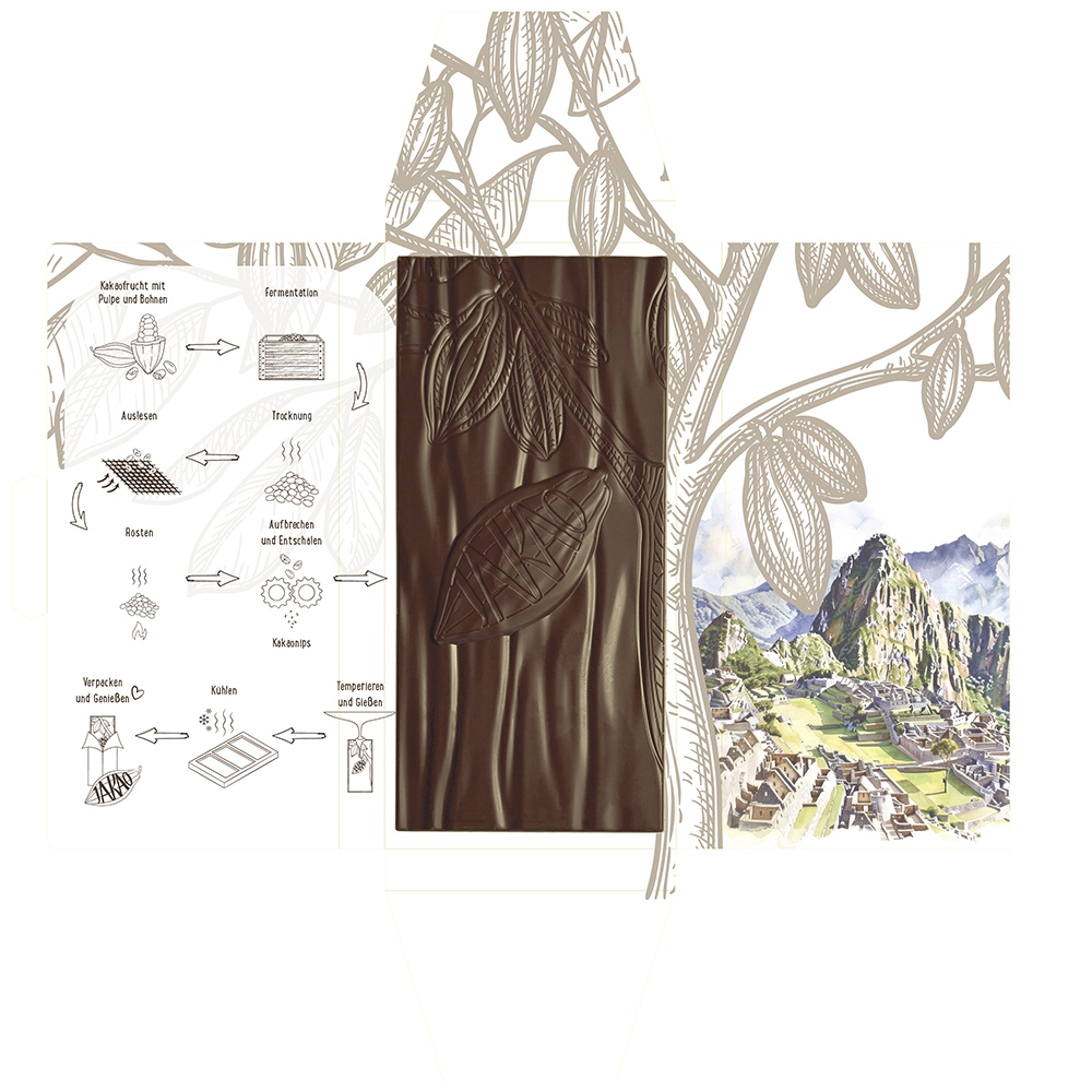 Der Kakao in dieser Schokolade ist eine echte Rarität und stammt von einer einzelnen,7 Hektar großen Farm, die sich in der malerischen Region Pichari, im VRAEM, Cusco, Peru befindet.