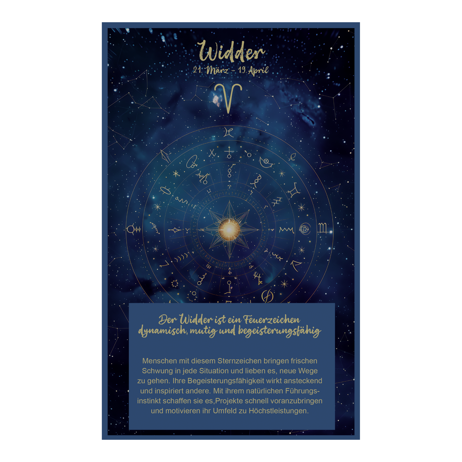 Unsere exklusive Präsentpackung enthält einen stilvollen Einschieber: Auf der Vorderseite schmückt das Symbol des jeweiligen Sternzeichens das Design, während auf der Rückseite die charakteristischen Eigenschaften liebevoll beschrieben sind.