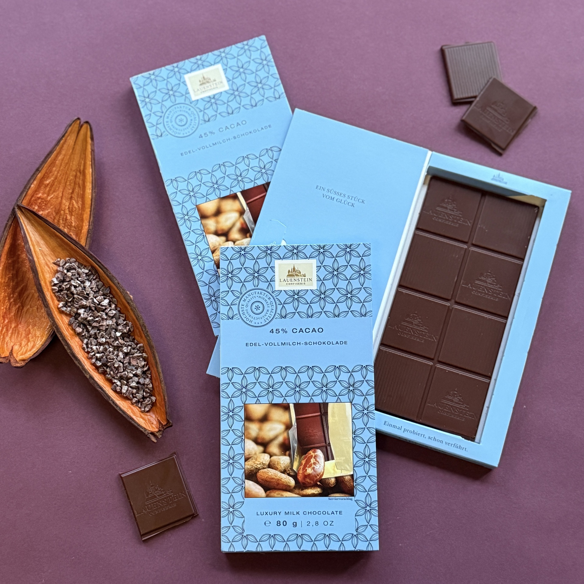Edel-Vollmilch-Schokolade mit 45 % Kakaoanteil