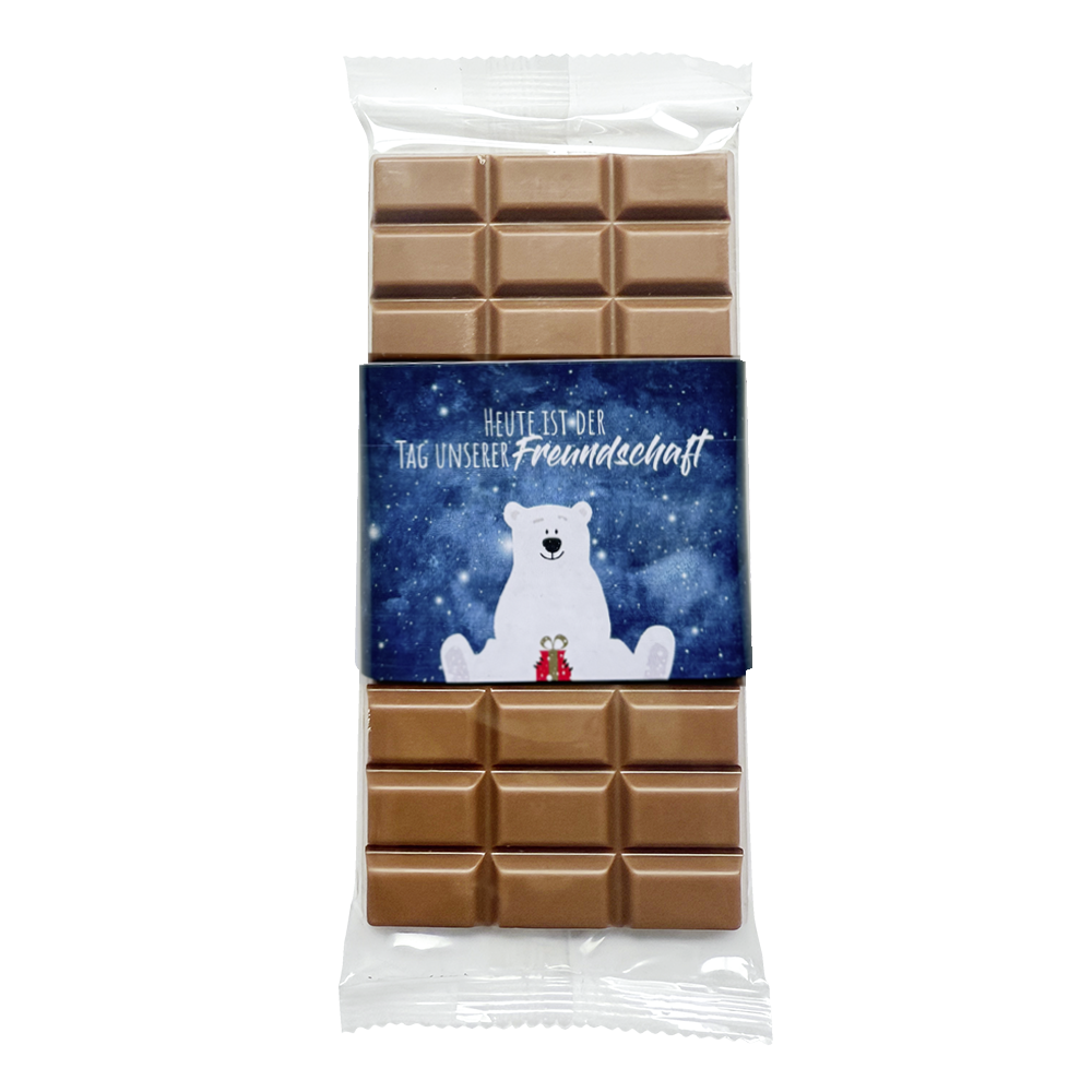 Vollmilchschokolade – „Heute ist der Tag unserer Freundschaft“Unsere Vollmilchschokolade versüßt jeden Moment – und sagt auf charmante Weise: „Danke, dass du da bist.“ Der liebevolle Spruch „Heute ist der Tag unserer Freundschaft“ macht diese Tafel zum perfekten Geschenk für beste Freunde, Seelenverwandte oder einfach Menschen, die einem am Herzen liegen.