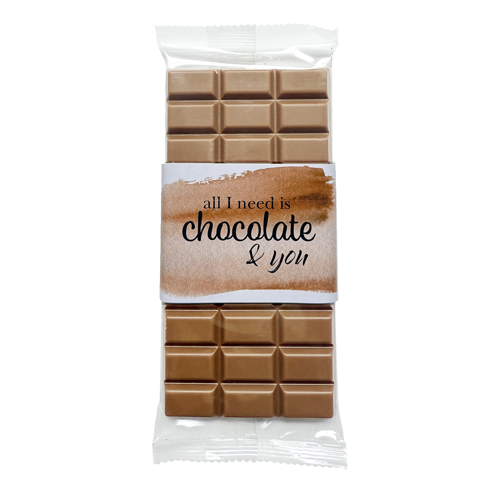 Unsere zartschmelzende Vollmilchschokolade vereint Geschmack mit einer Prise Romantik. Der süße Spruch „All I need is chocolate & you“ macht diese Tafel zum perfekten Geschenk für den Lieblingsmenschen – oder einfach zum Selbstverwöhnen mit einem Augenzwinkern.